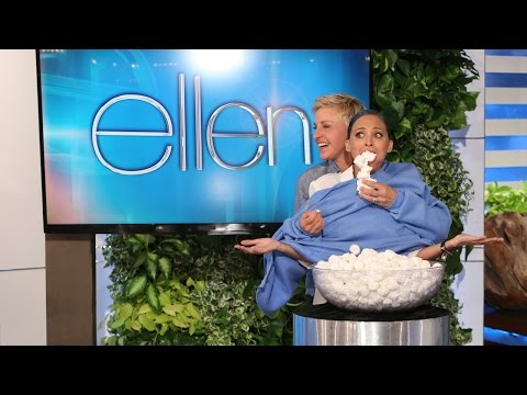 Nicole broke the record for the most marshmallows stuffed into a guest's mouth in 45 seconds, and Ellen awarded the starlet with a marshmallow crown and sash.